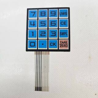 更多內容 : 圖片展示的是具備導電線路的薄膜開關銘版(Membrane Switch),常用於電子秤或工業儀器。這類銘版不僅是視覺外觀,更包含了電路功能。 印刷工藝: 反面印刷:圖案印在透明材料的背面,文字不會因手指摩擦而掉漆。 導電層印刷:在底層薄膜印上導電銀漿,形成開關線路。